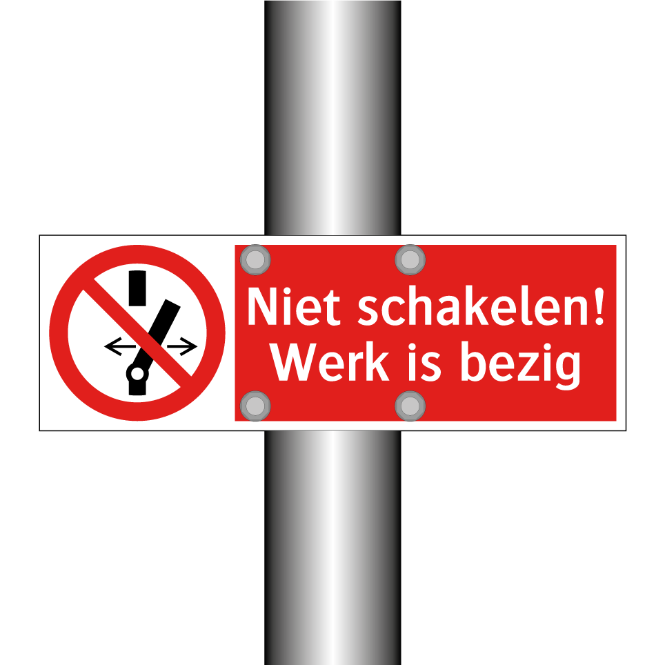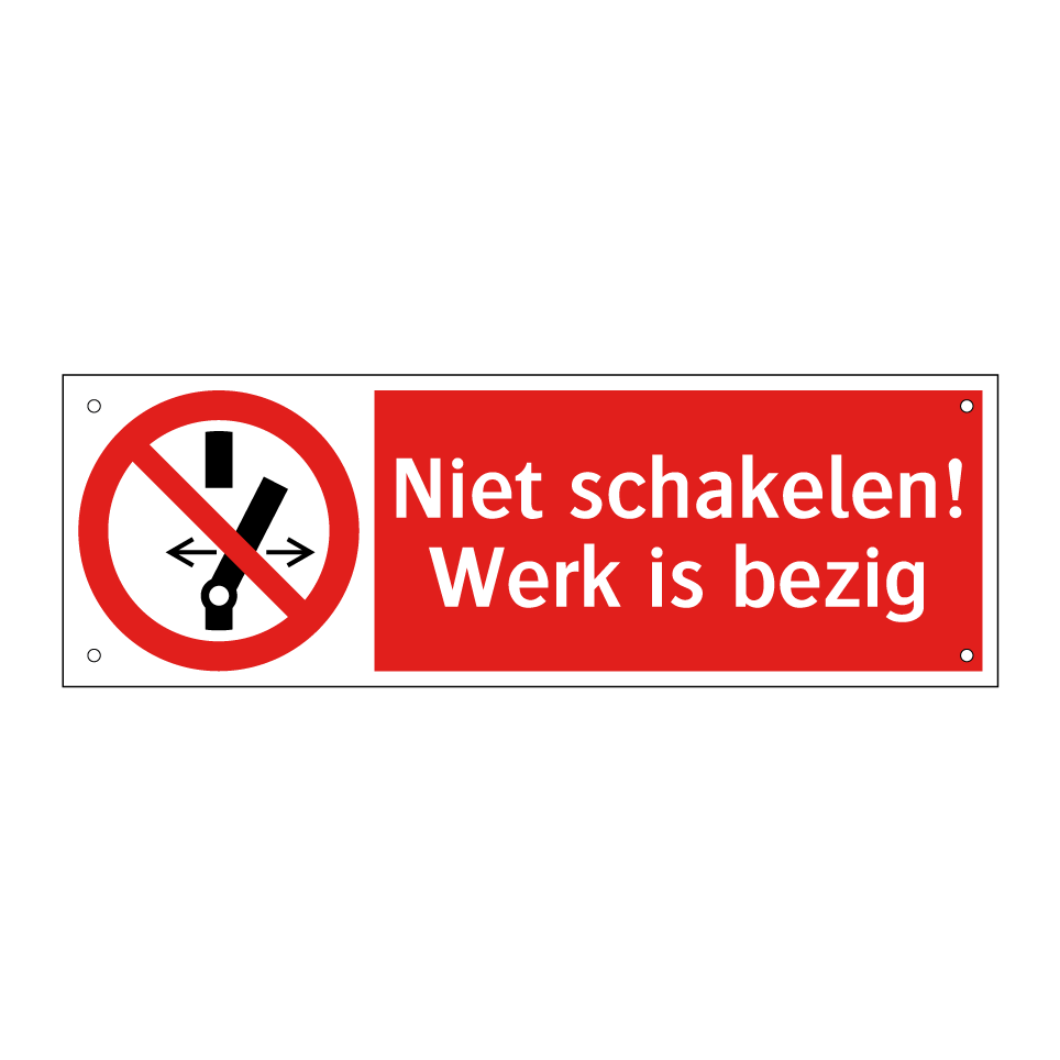 Deze opvallende verbodsbord is essentieel voor elke werkomgeving waar veiligheid voorop staat. Het bord waarschuwt duidelijk dat er werkzaamheden aan de gang zijn en dat schakelen verboden is, wat helpt om ongelukken en storingen te voorkomen. Ideaal voor gebruik in industriële omgevingen, bouwplaatsen of technische ruimtes waar onderhoud of reparaties plaatsvinden. Door de heldere rode achtergrond en witte tekst is het bord goed zichtbaar, zelfs van een afstand. Plaats het op strategische locaties zoals bij schakelkasten, machines of ingangen van werkzones om ervoor te zorgen dat iedereen op de hoogte is van de lopende werkzaamheden en de bijbehorende veiligheidsmaatregelen.