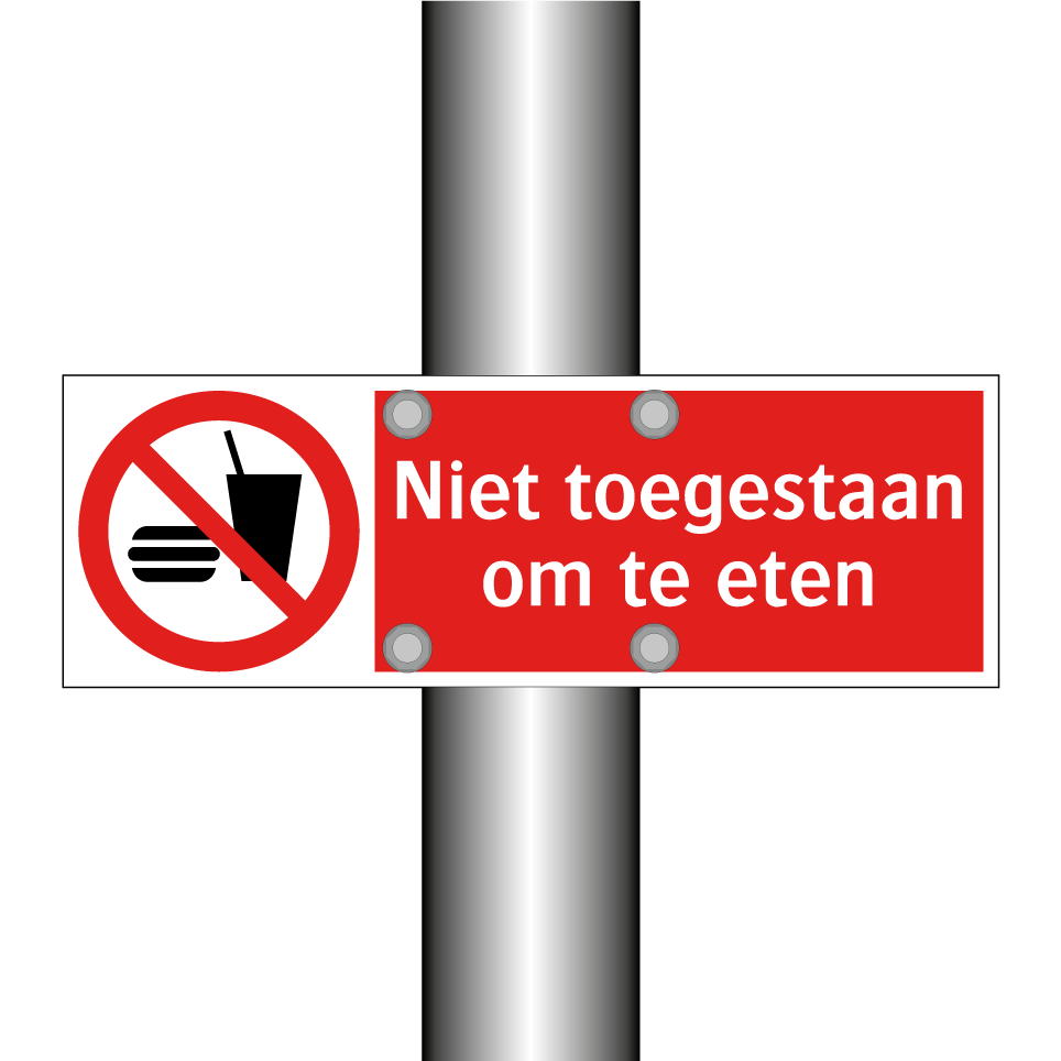 Verbodsbord met de tekst Niet toegestaan om te eten