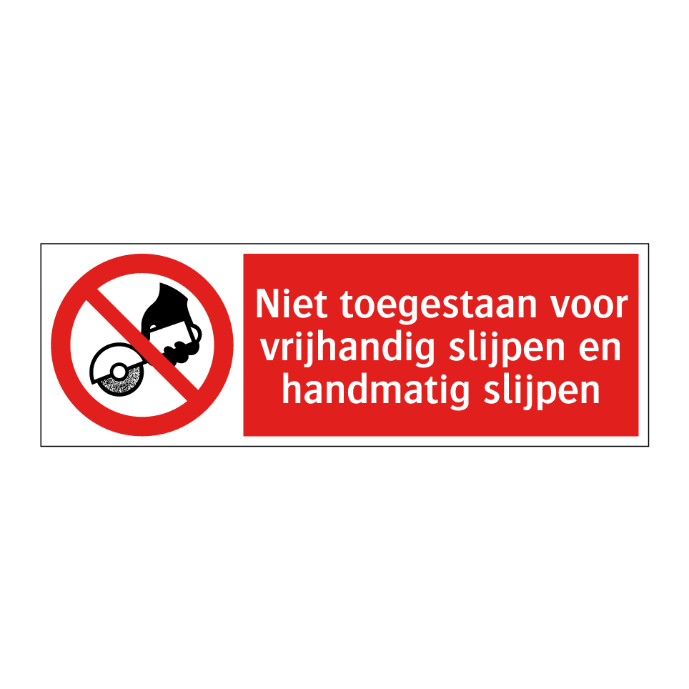 Verbodsbord met de tekst Niet toegestaan voor vrijhandig slijpen en handmatig slijpen