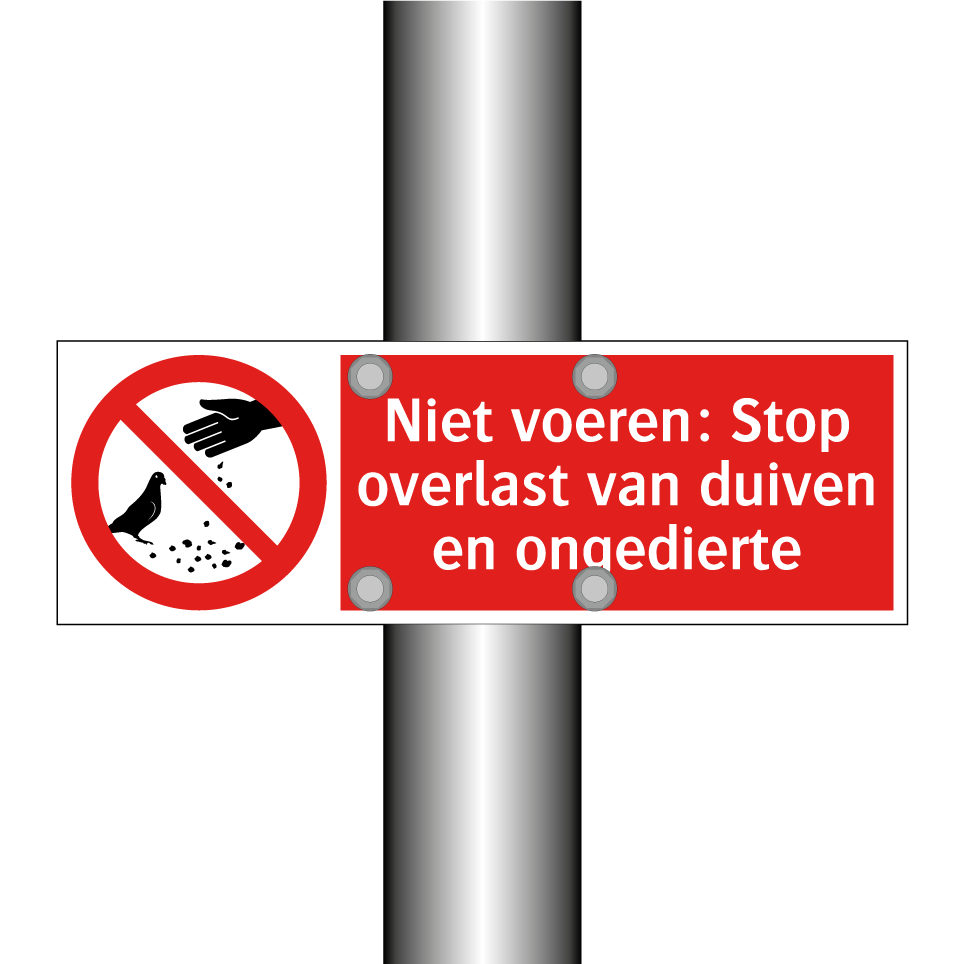 Verbodsbord met de tekst Niet voeren: Stop overlast van duiven en ongedierte