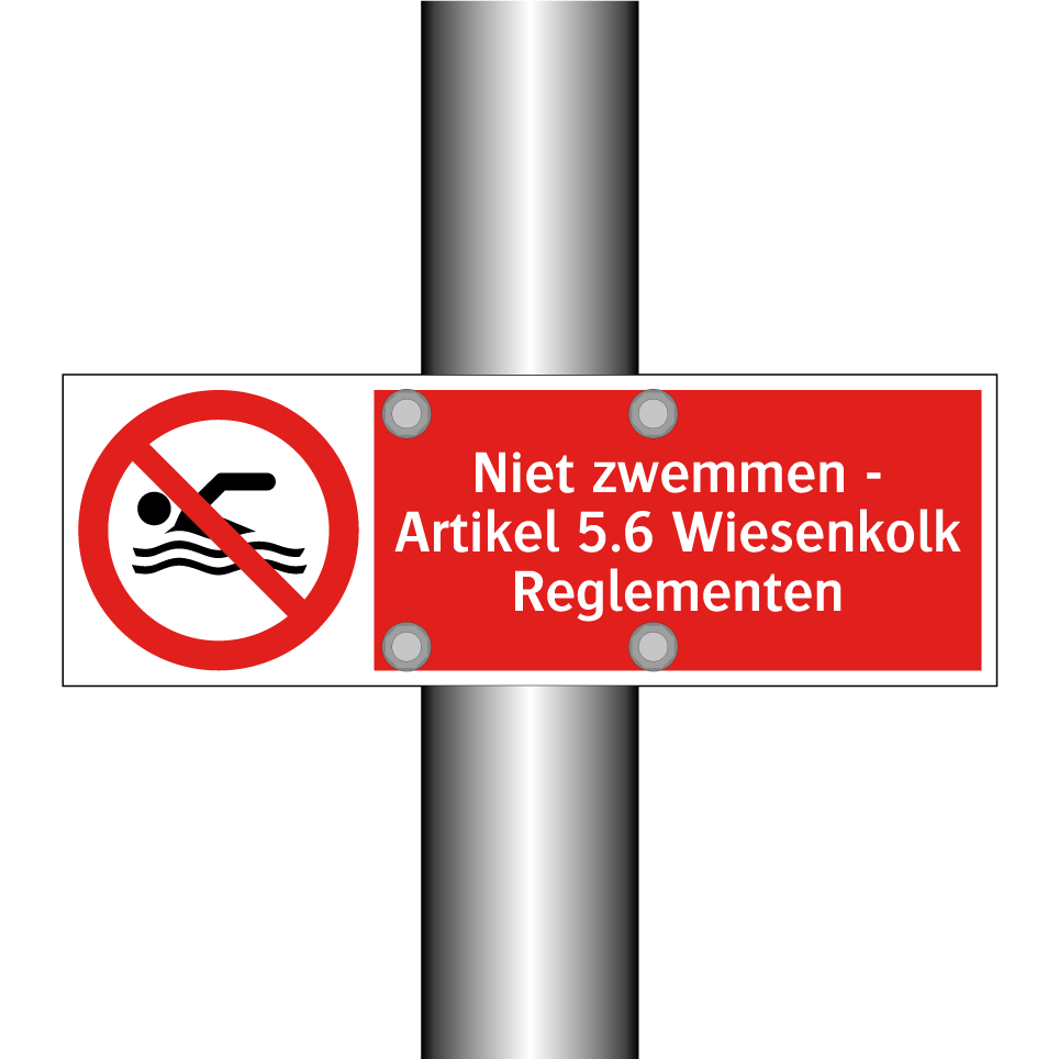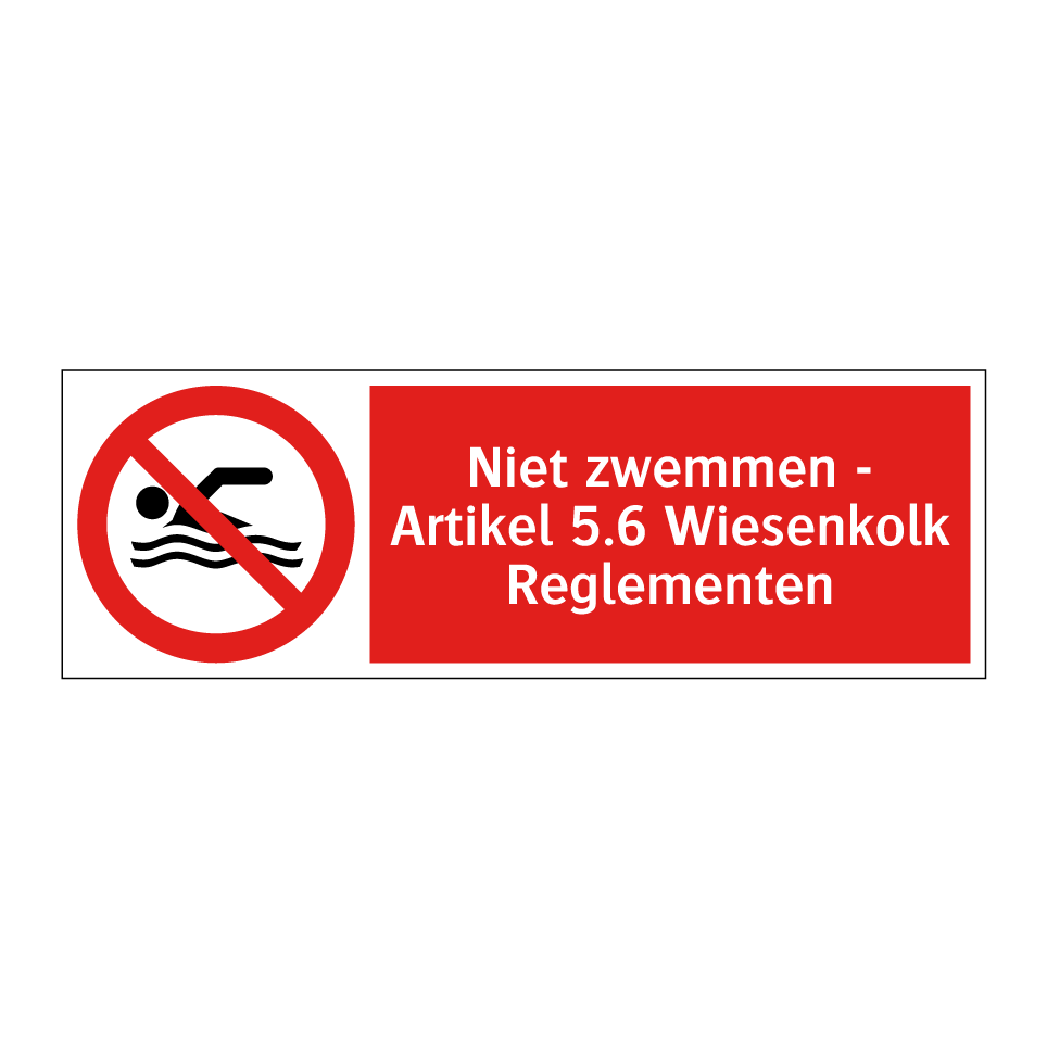 Verbodsbord met de tekst Niet zwemmen - Artikel 5.6 Wiesenkolk Reglementen