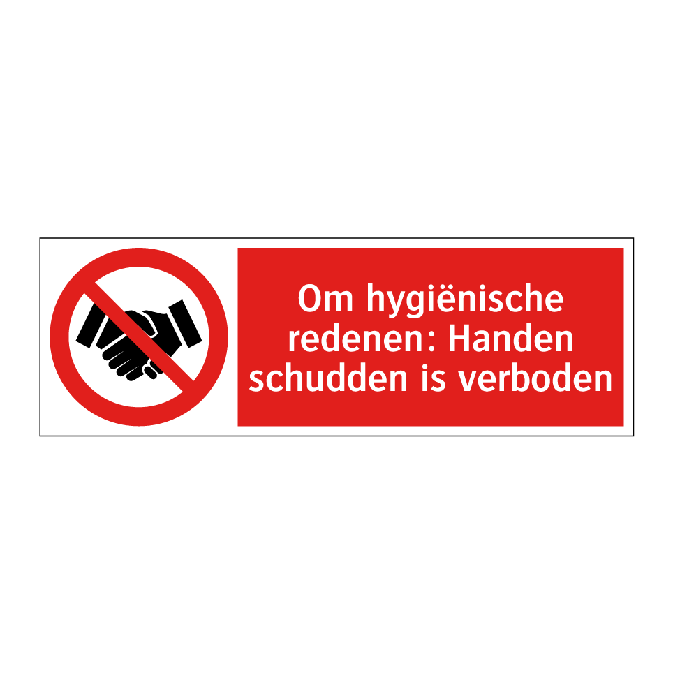 Verbodsbord met de tekst Om hygiënische redenen: Handen schudden is verboden