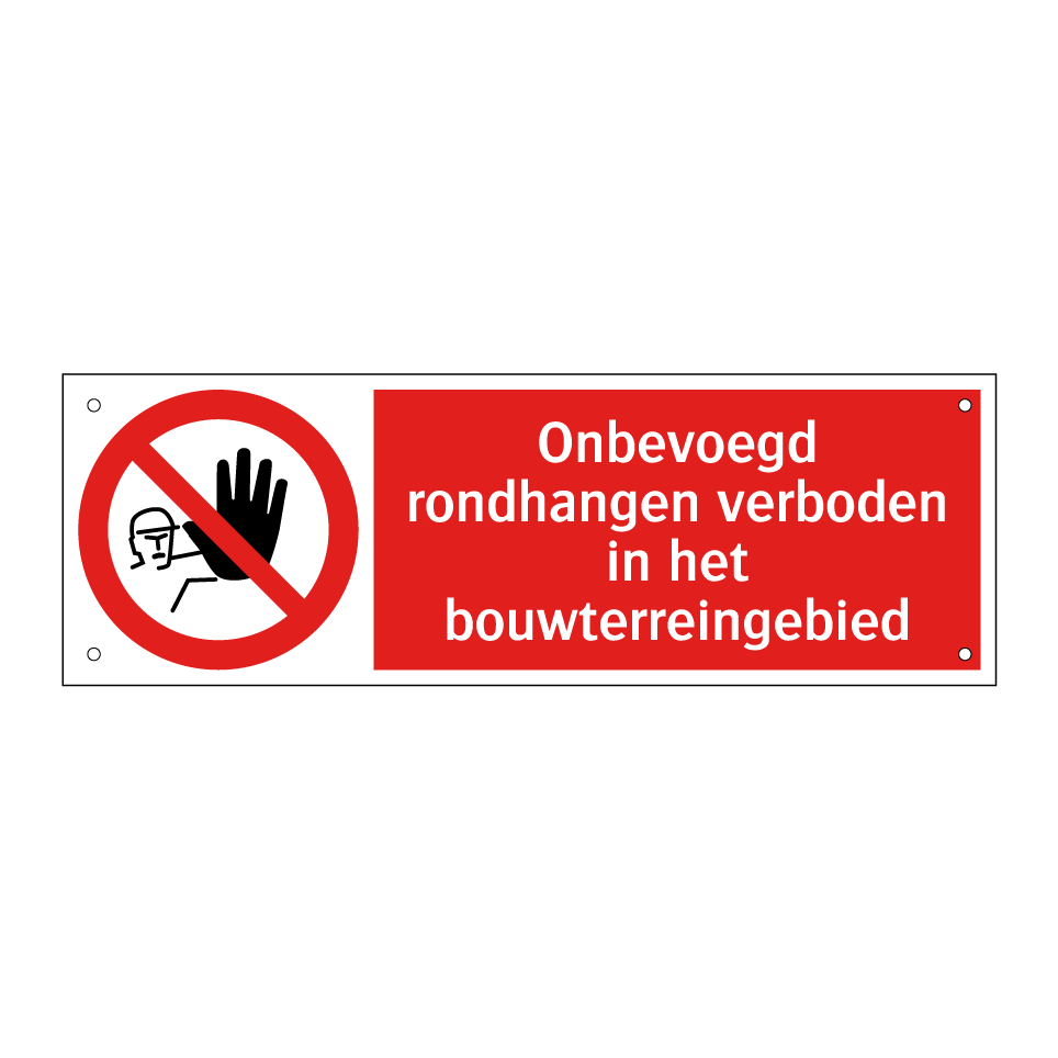 Verbodsbord met de tekst Onbevoegd rondhangen verboden in het bouwterreingebied