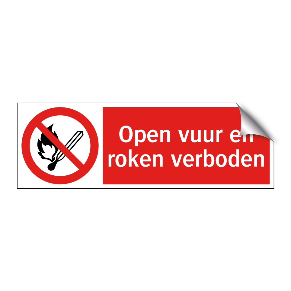 Verbodsbord met de tekst Open vuur en roken verboden