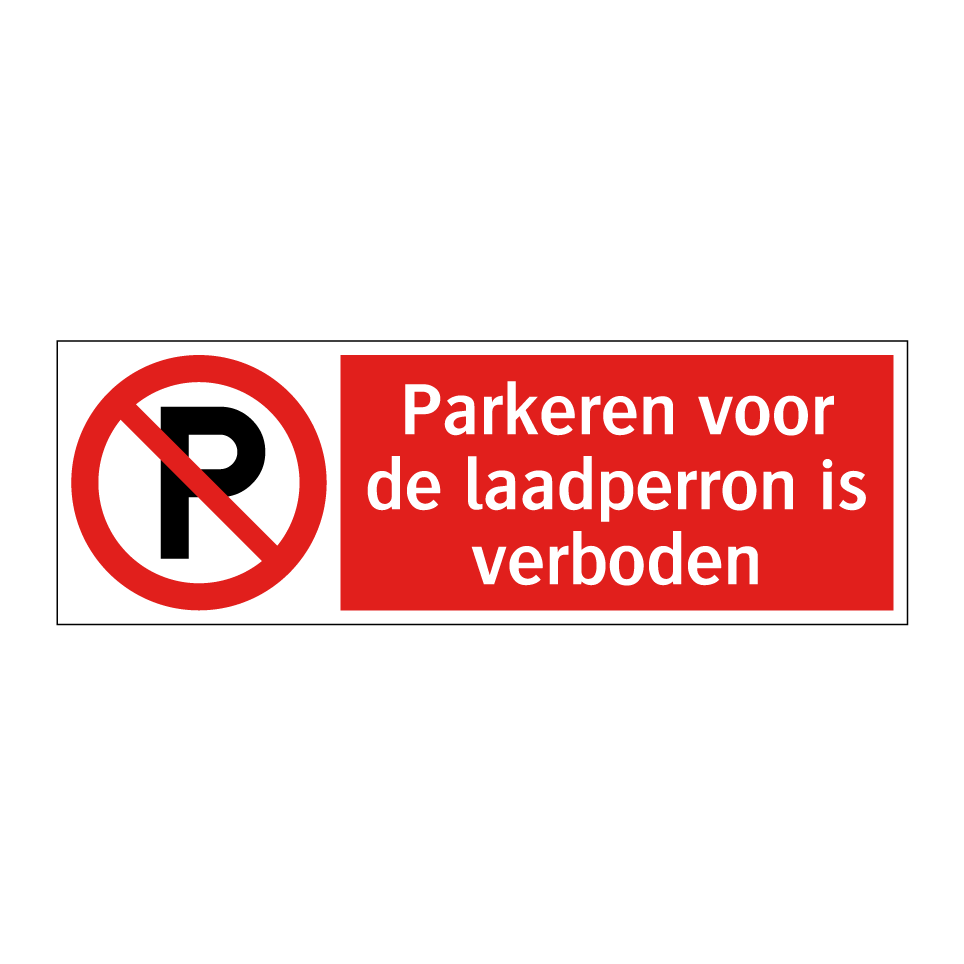 Verbodsbord met de tekst Parkeren voor de laadperron is verboden