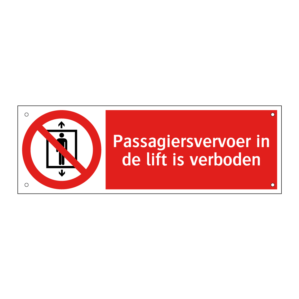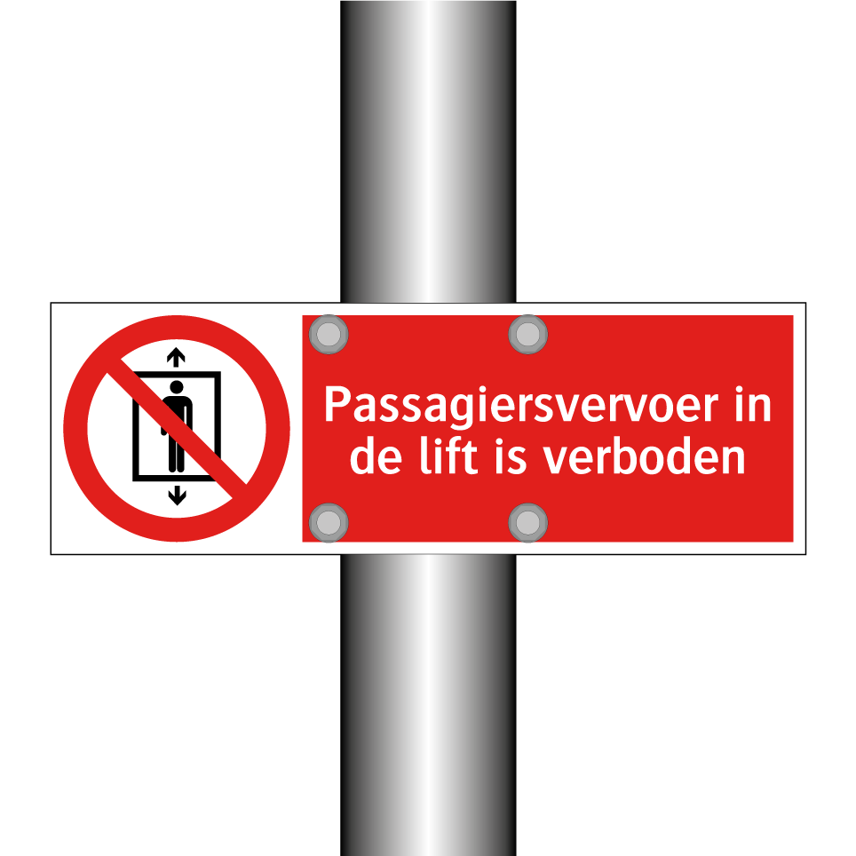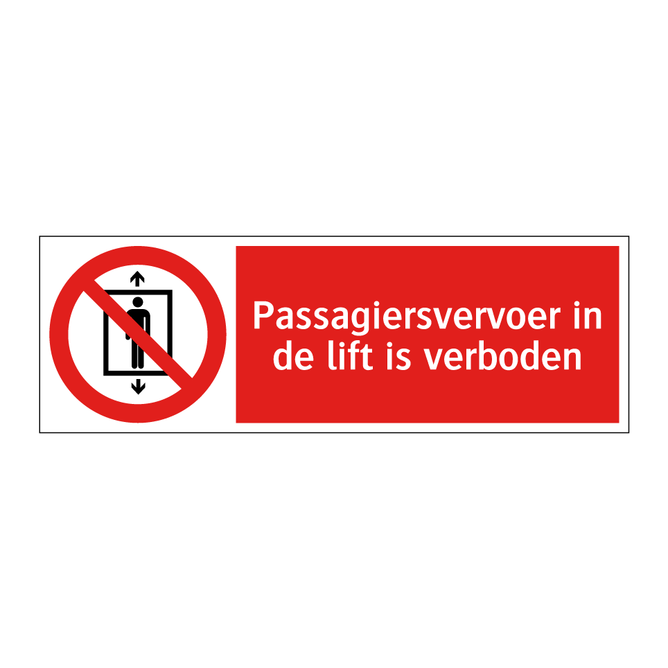 Verbodsbord met de tekst Passagiersvervoer in de lift is verboden