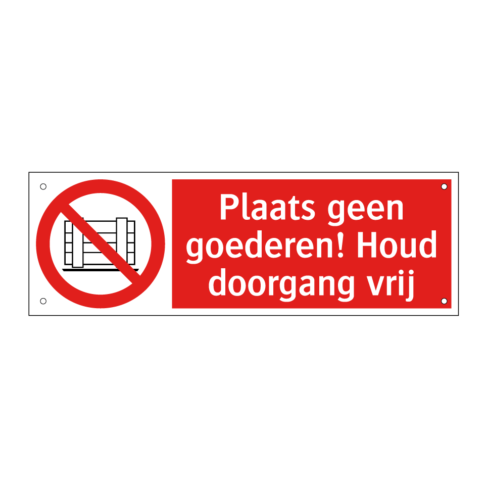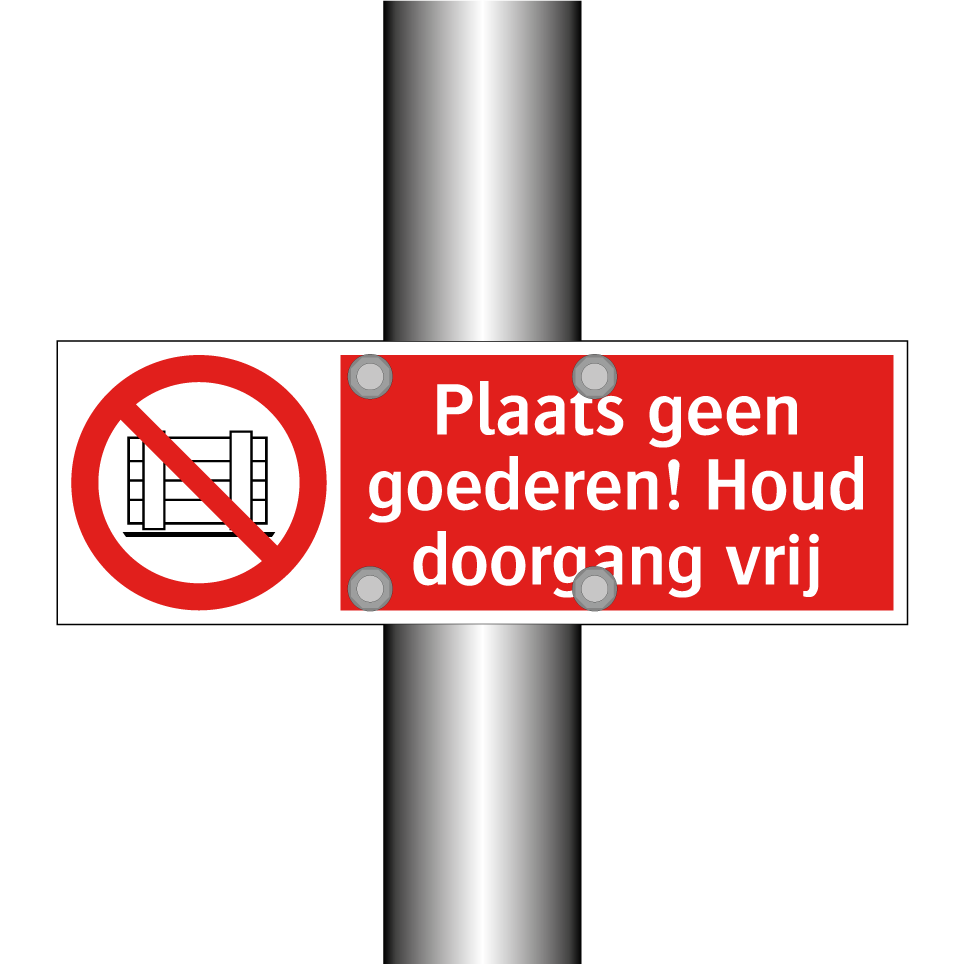 Verbodsbord met de tekst Plaats geen goederen! Houd doorgang vrij