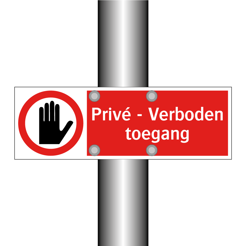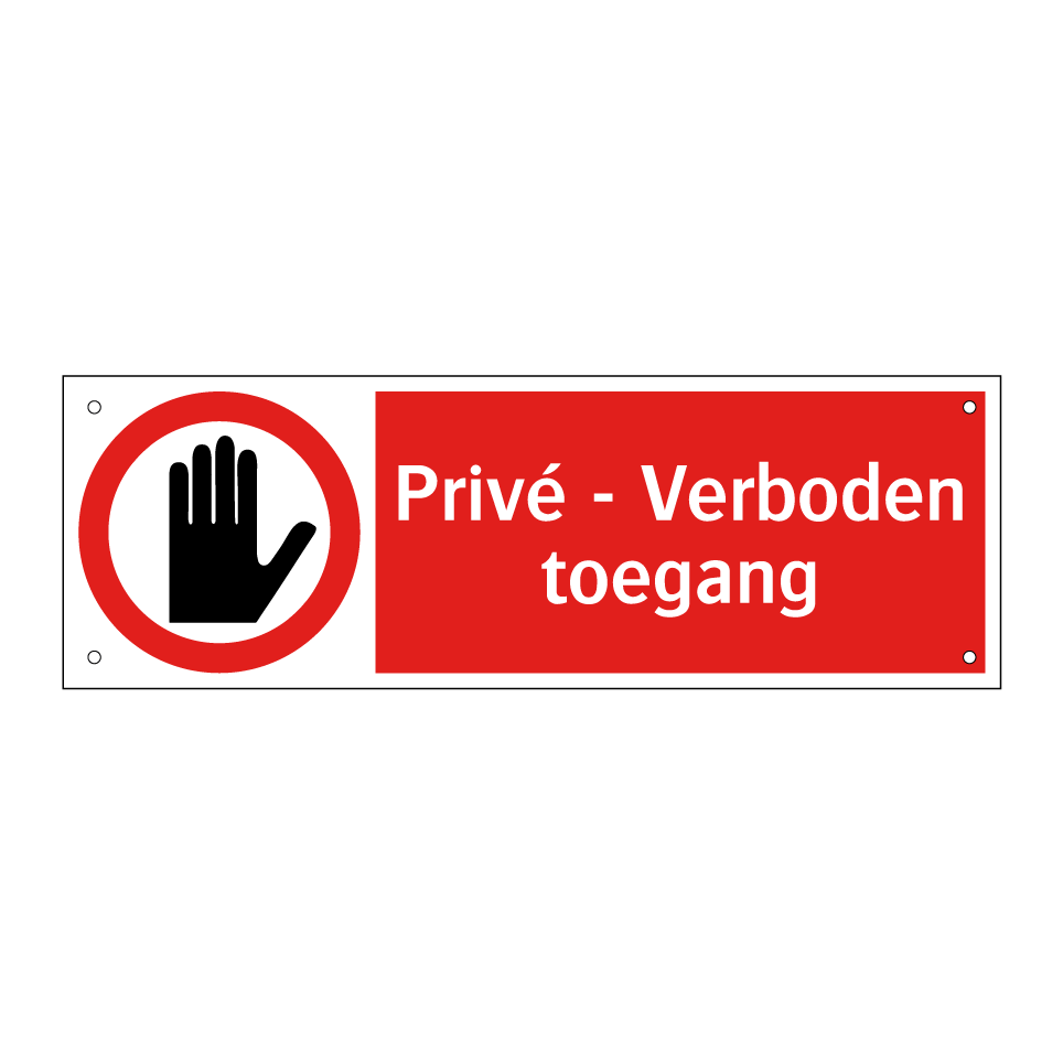 Deze opvallende verbodsbord is ideaal voor het duidelijk aangeven van privéterreinen waar toegang niet is toegestaan. Met zijn rode achtergrond en witte tekst trekt het onmiddellijk de aandacht en zorgt het voor een effectieve communicatie van het toegangsverbod. Dit bord is perfect voor gebruik bij ingangen van privé-eigendommen, zoals opritten, tuinen of bedrijfsterreinen, waar ongewenste bezoekers moeten worden geweerd. Door de duidelijke symboliek en tekst is het een essentiële toevoeging voor elke locatie die behoefte heeft aan extra beveiliging en privacy. Plaats het op een zichtbare plek om de boodschap krachtig over te brengen en ongeautoriseerde toegang te voorkomen.