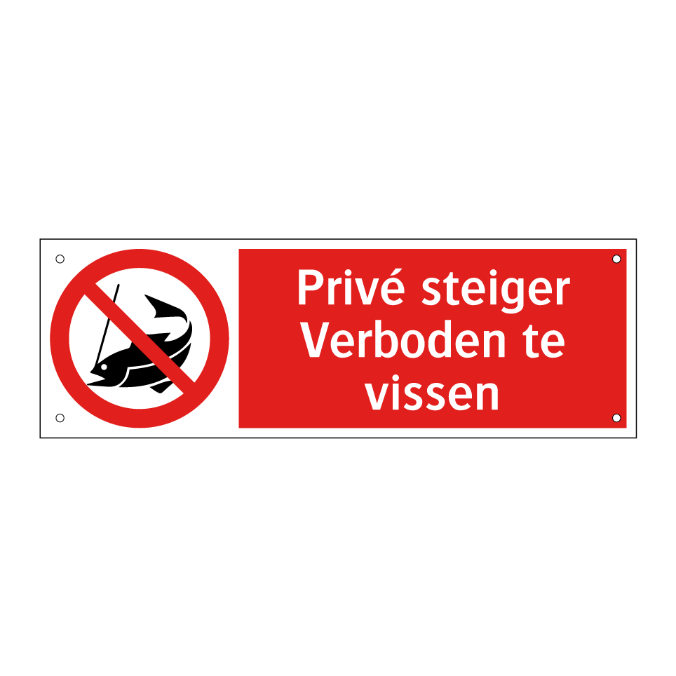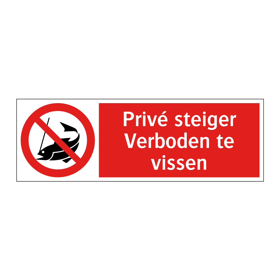 Verbodsbord met de tekst Privé steiger Verboden te vissen