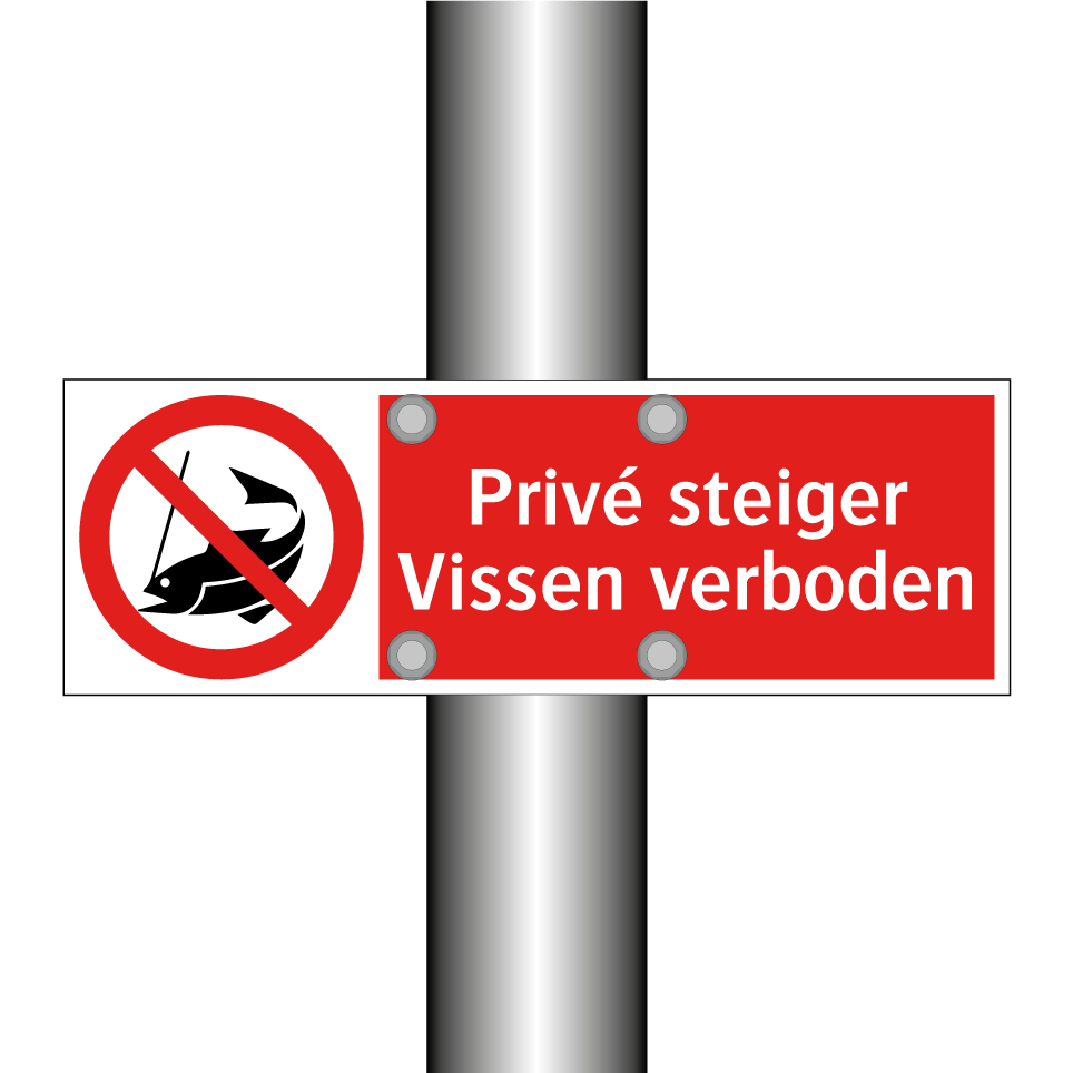 Verbodsbord met de tekst Privé steiger Vissen verboden