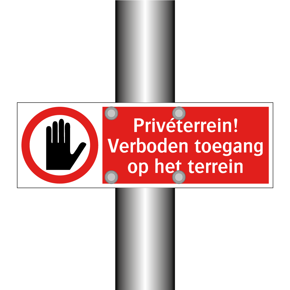 Verbodsbord met de tekst Privéterrein! Verboden toegang op het terrein