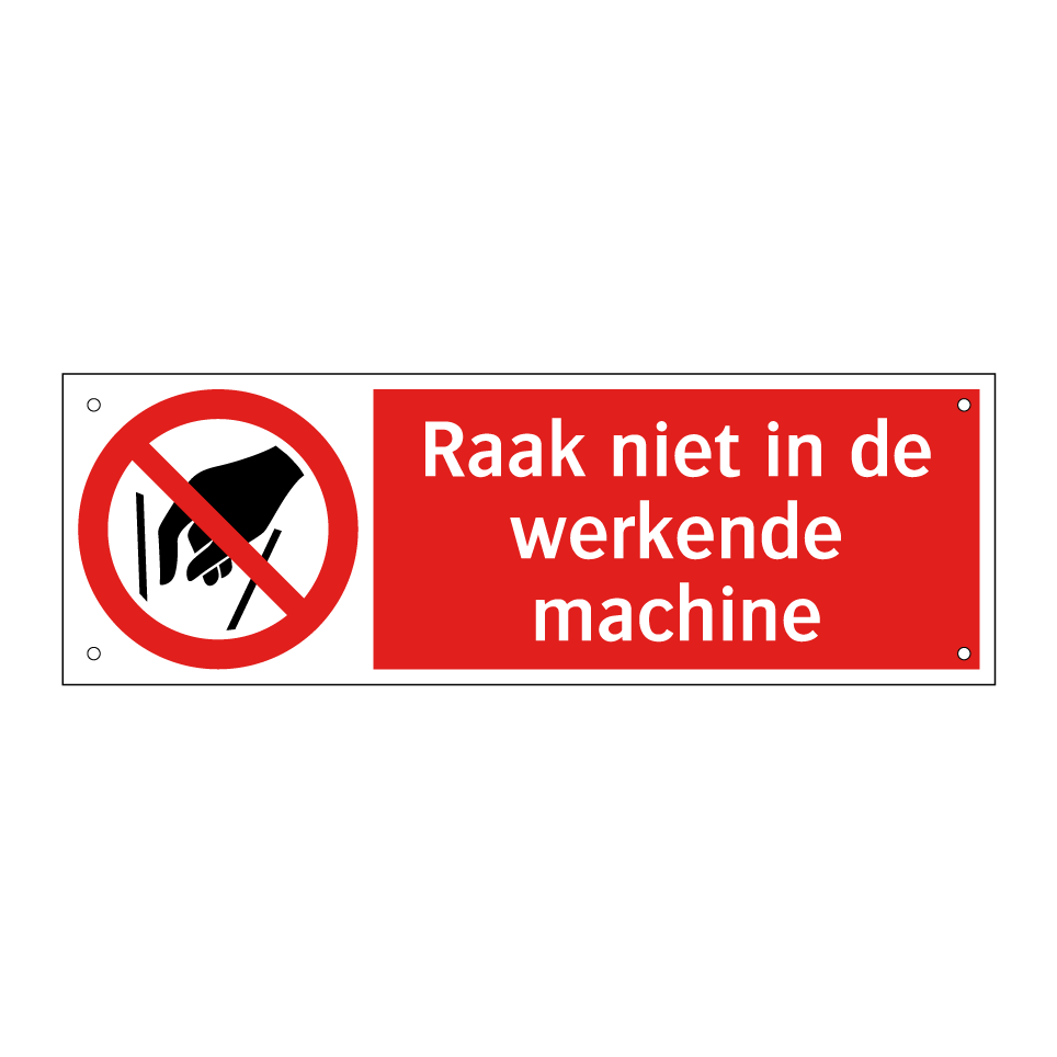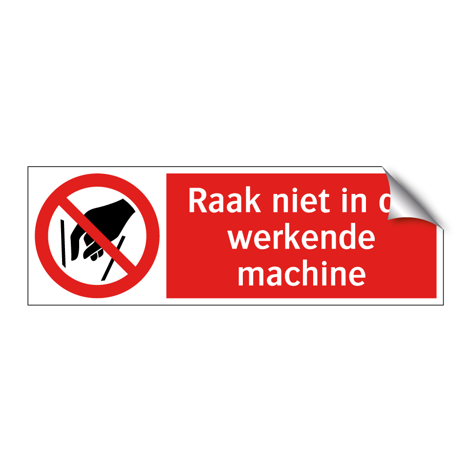 Verbodsbord met de tekst Raak niet in de werkende machine