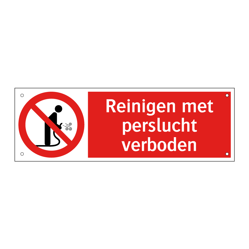 Verbodsbord met de tekst Reinigen met perslucht verboden