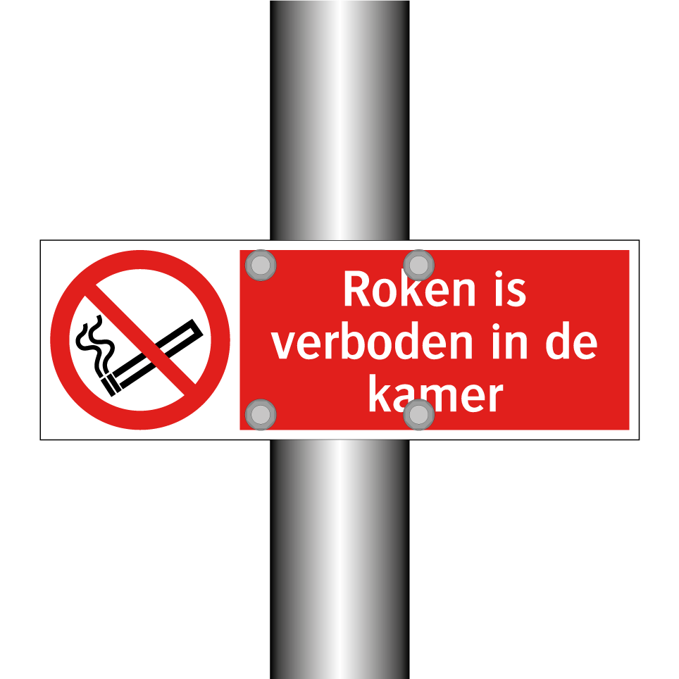 Verbodsbord met de tekst Roken is verboden in de kamer