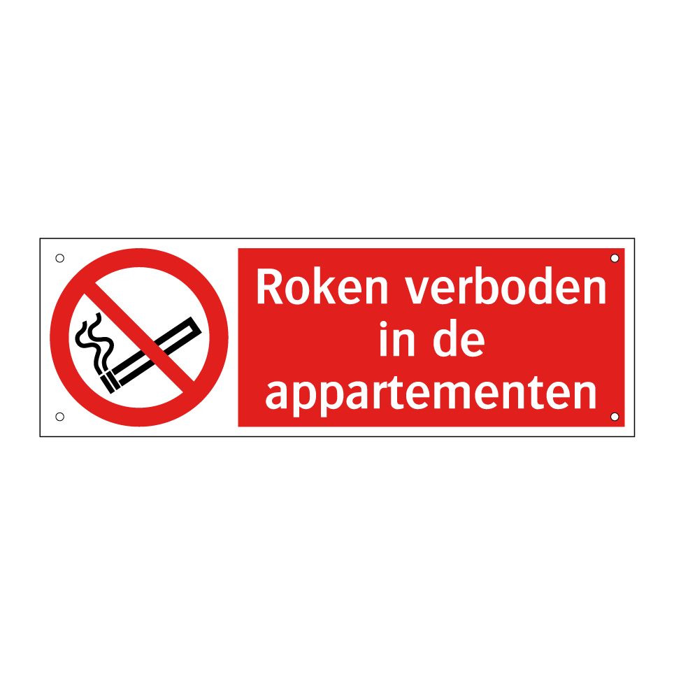 Verbodsbord met de tekst Roken verboden in de appartementen