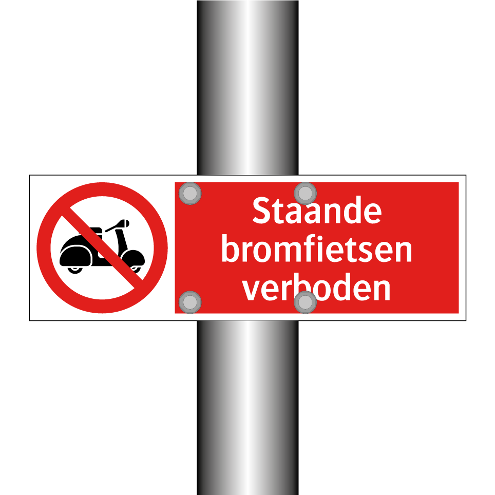 Verbodsbord met de tekst Staande bromfietsen verboden