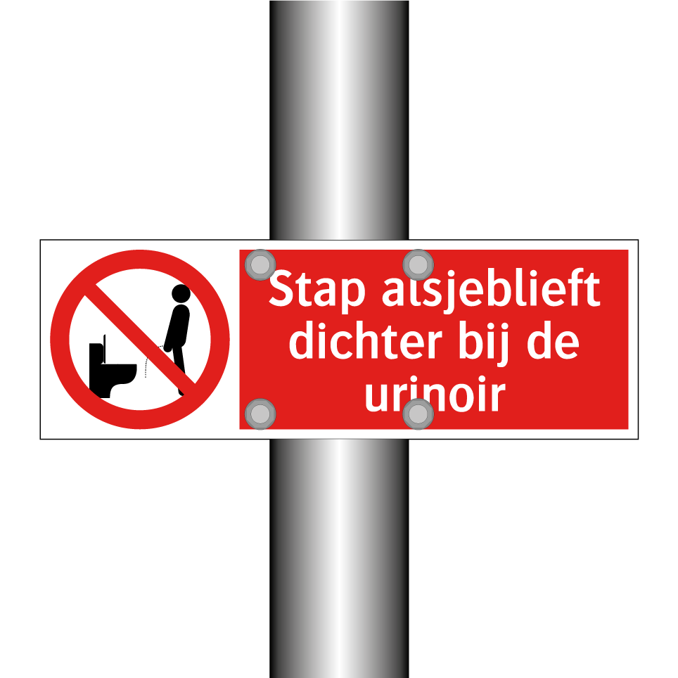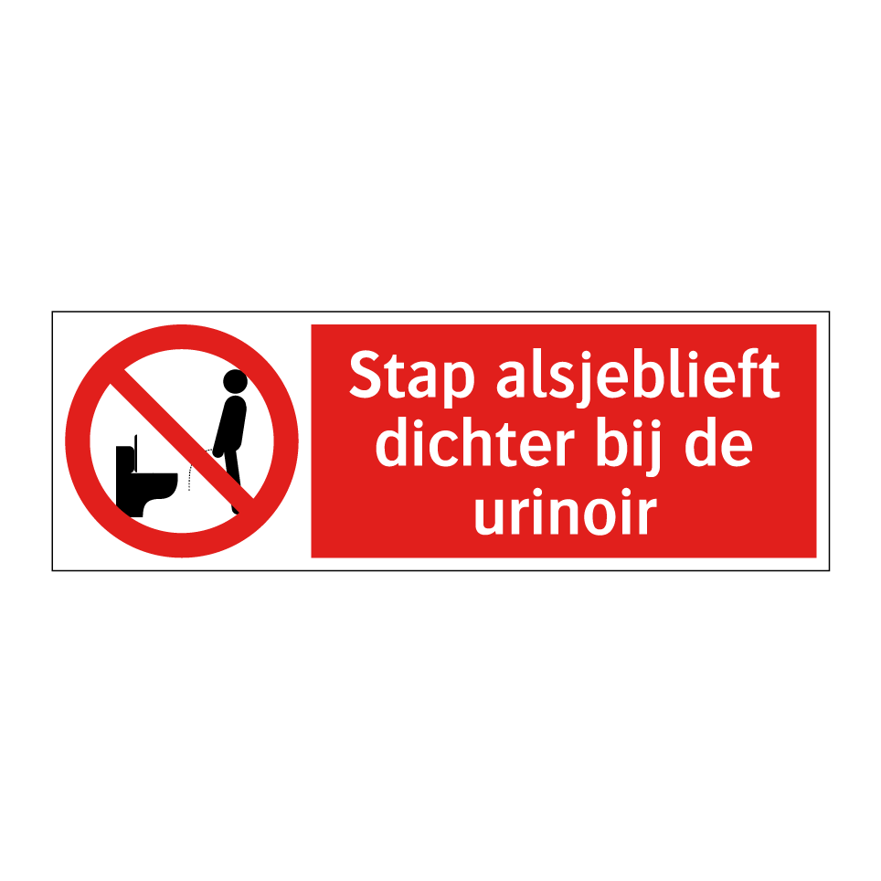Verbodsbord met de tekst Stap alsjeblieft dichter bij de urinoir