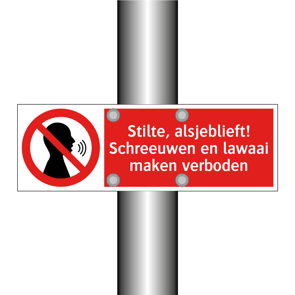 Verbodsbord met de tekst Stilte, alsjeblieft! Schreeuwen en lawaai maken verboden