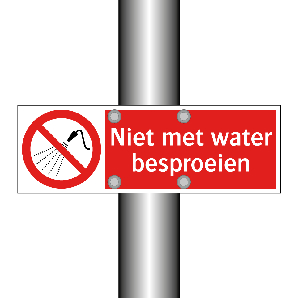 Verbodsbord met de tekst Niet met water besproeien