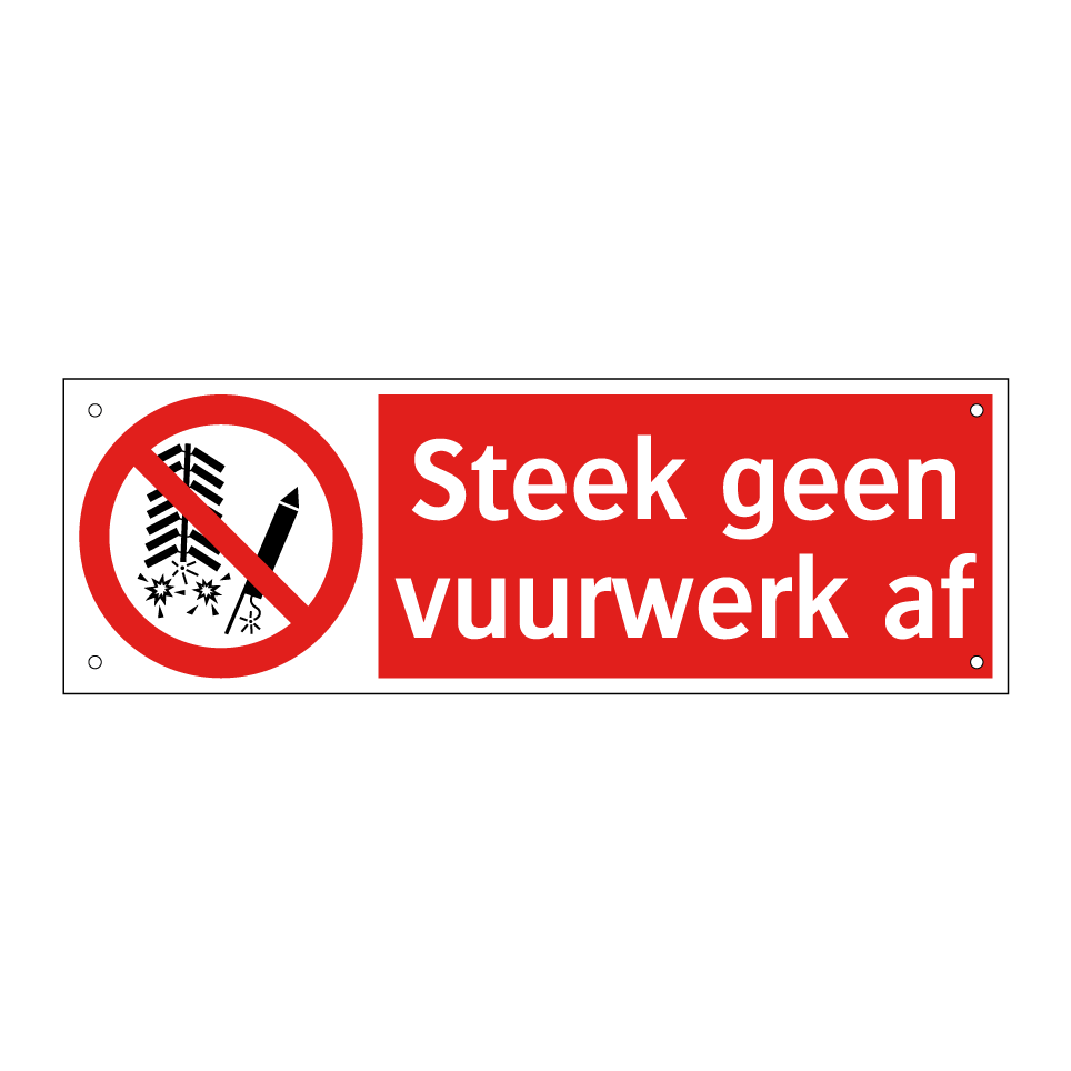 Verbodsbord met de tekst Steek geen vuurwerk af
