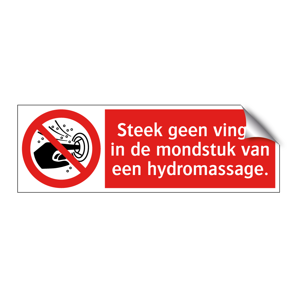 Verbodsbord met de tekst Steek geen vinger in de mondstuk van een hydromassage.