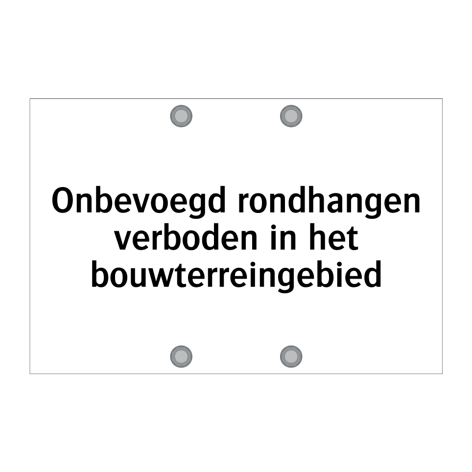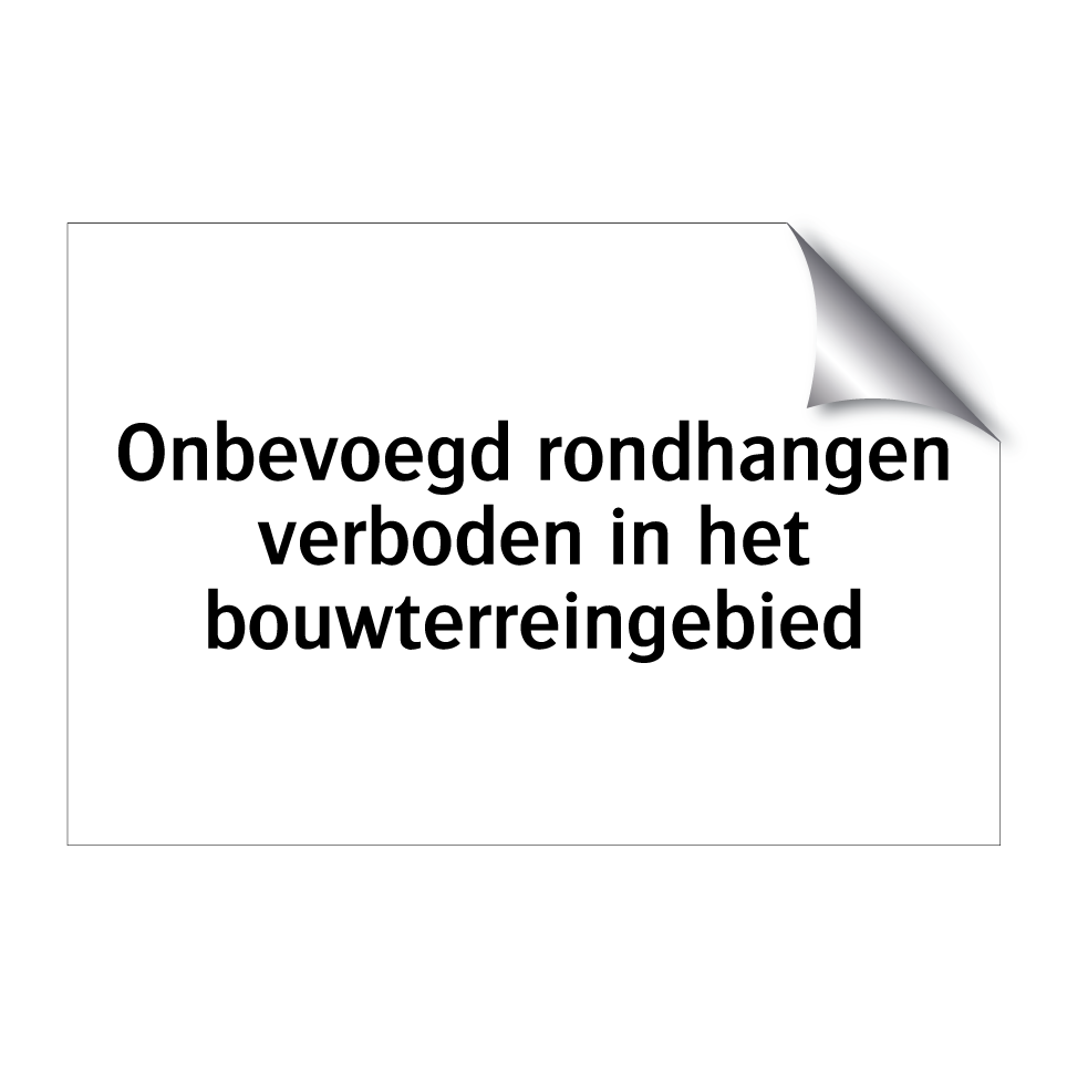 Verbodsbord met de tekst Onbevoegd rondhangen verboden in het bouwterreingebied
