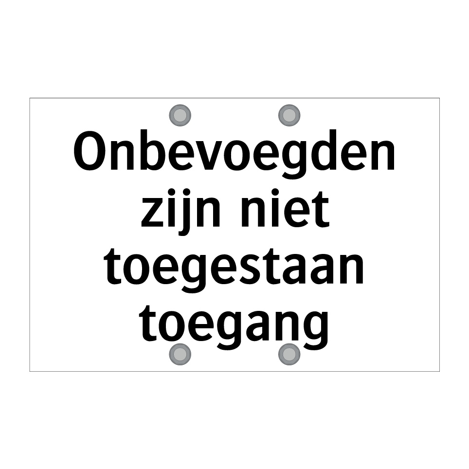 Verbodsbord met de tekst Onbevoegden zijn niet toegestaan toegang
