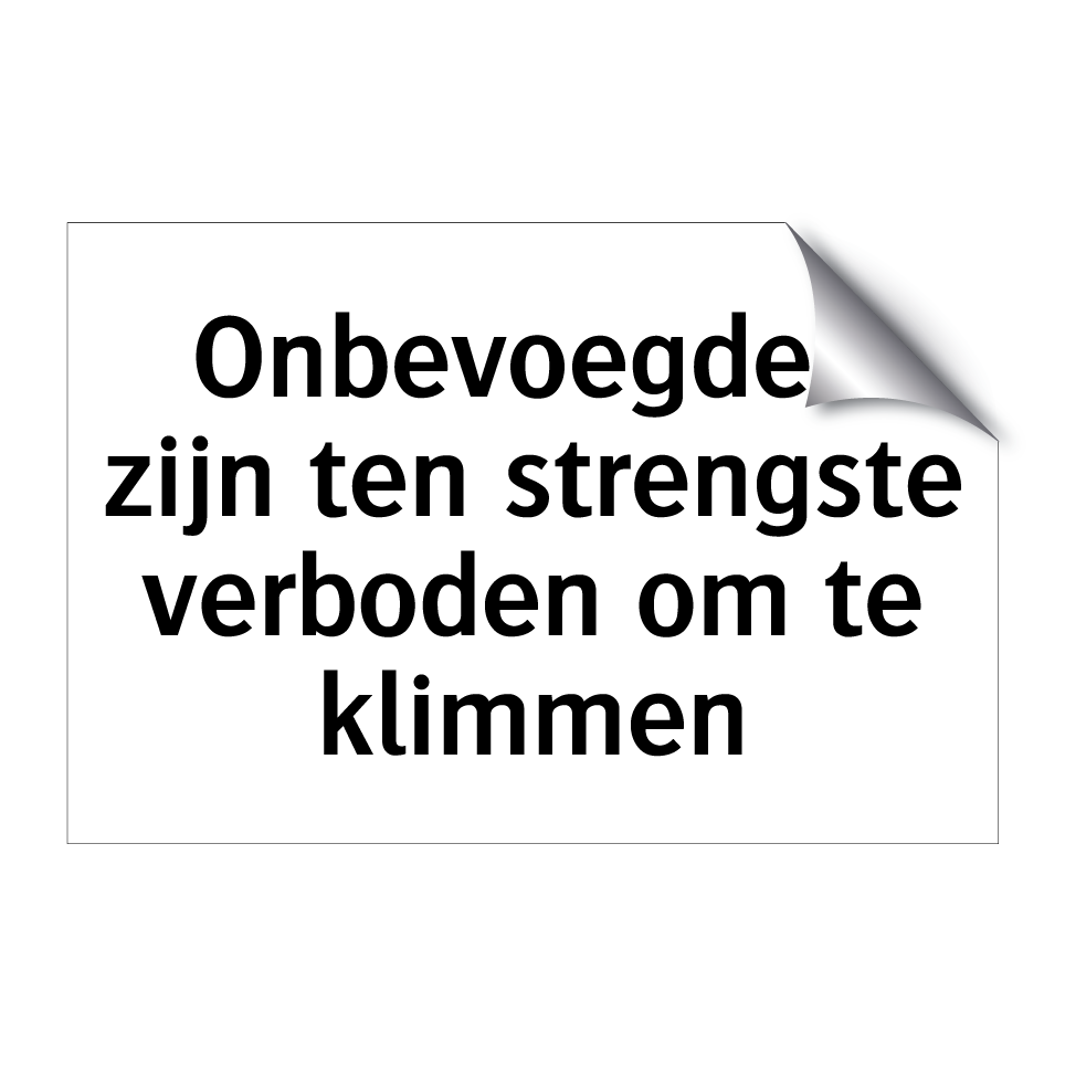 Verbodsbord met de tekst Onbevoegden zijn ten strengste verboden om te klimmen