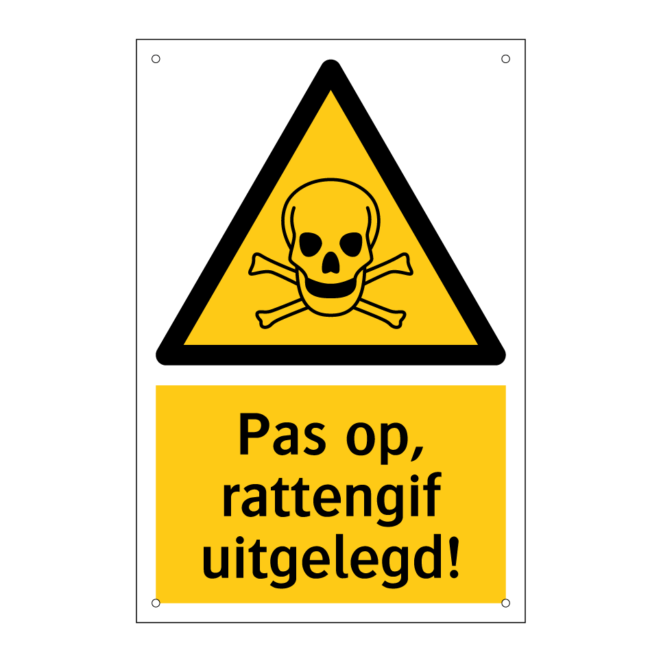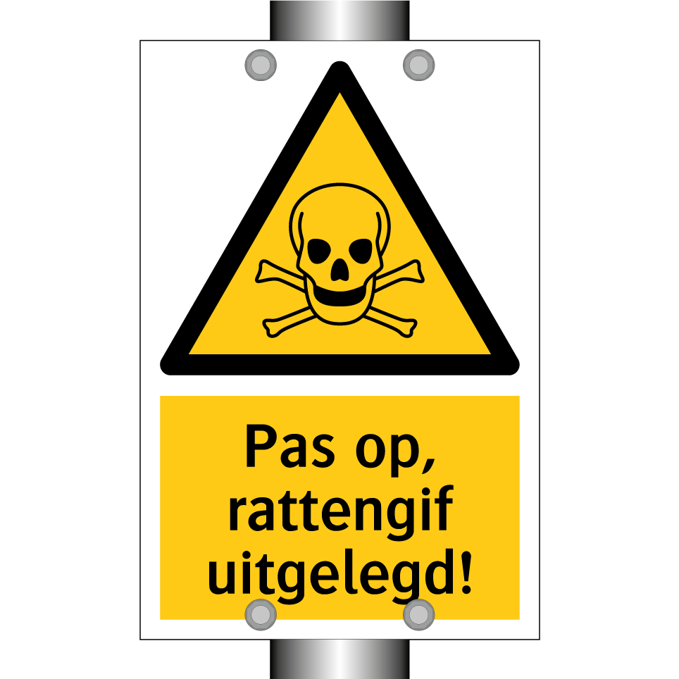 Waarschuwingsbord met de tekst Pas op, rattengif uitgelegd!
