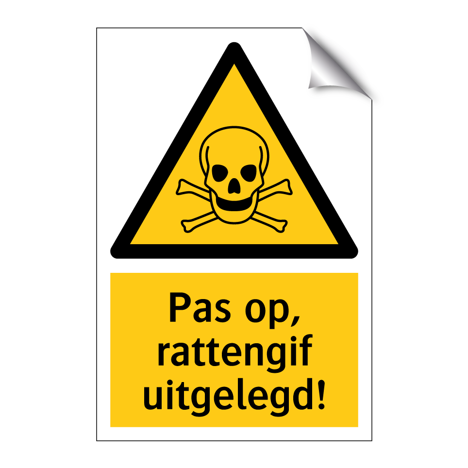 Deze waarschuwingsbord is essentieel voor het waarborgen van de veiligheid in gebieden waar rattengif is geplaatst. Ideaal voor gebruik in magazijnen, opslagruimtes, kelders en andere plekken waar ongediertebestrijding noodzakelijk is. Door deze bord op strategische locaties te plaatsen, kunnen bezoekers en medewerkers tijdig gewaarschuwd worden voor de aanwezigheid van giftige stoffen. Dit waarschuwingsbord helpt ongelukken te voorkomen en zorgt voor een veilige omgeving. Plaats het bord bij ingangen, langs looproutes of in de buurt van opslagplaatsen om maximale zichtbaarheid te garanderen. Veiligheid eerst met dit duidelijke en effectieve waarschuwingsbord.
