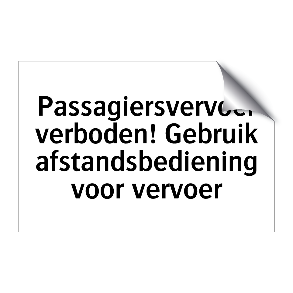 Verbodsbord met de tekst Passagiersvervoer verboden! Gebruik afstandsbediening voor vervoer