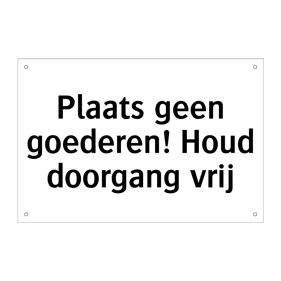 Verbodsbord met de tekst Plaats geen goederen! Houd doorgang vrij