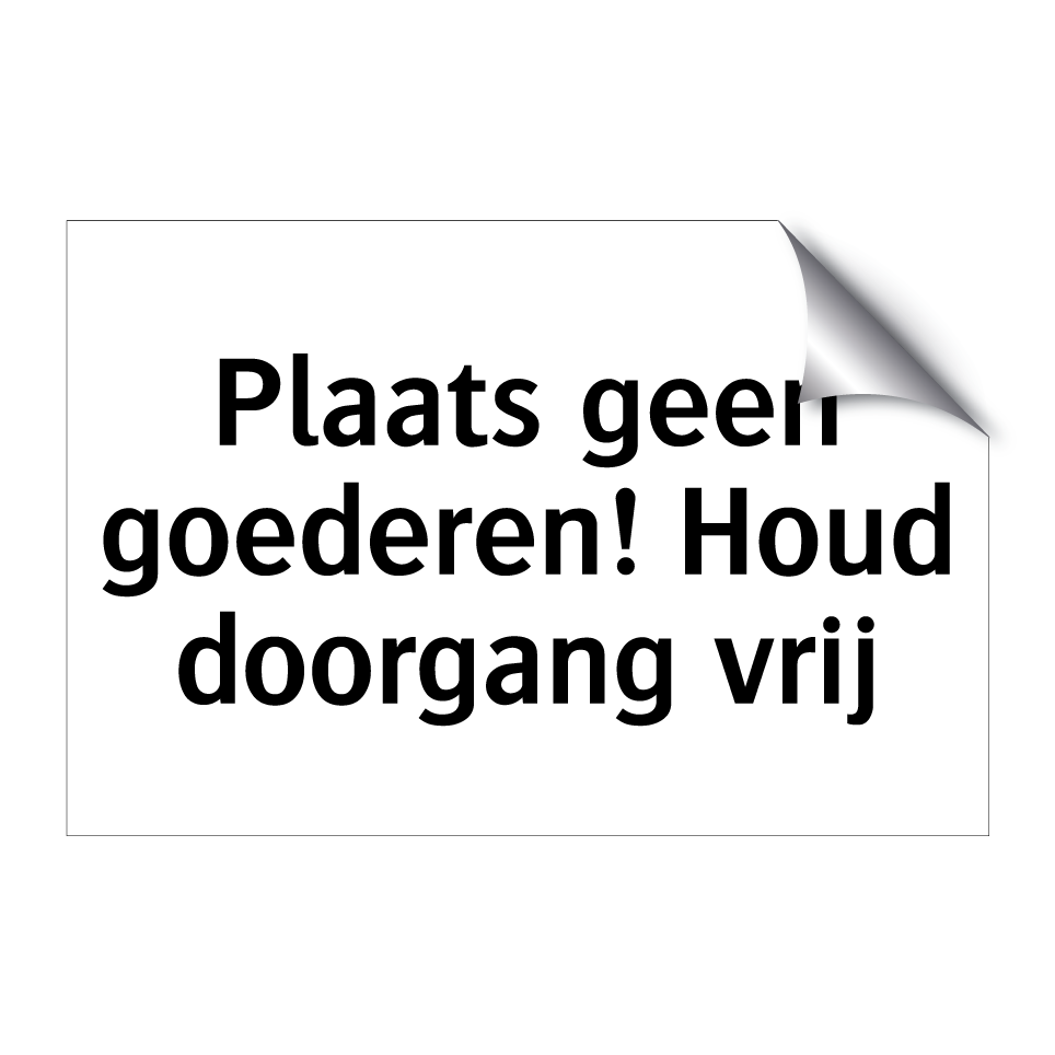 Deze opvallende verbodsbord is ideaal voor het handhaven van een vrije doorgang in drukke omgevingen. Plaats deze bord op strategische locaties zoals magazijnen, laadperrons of smalle doorgangen om ervoor te zorgen dat er geen goederen worden achtergelaten die de doorgang kunnen blokkeren. Het duidelijke ontwerp met zwarte tekst op een witte achtergrond zorgt ervoor dat de boodschap niet over het hoofd wordt gezien. Dit bord is een essentiële toevoeging voor bedrijven die de veiligheid en efficiëntie willen verbeteren door ervoor te zorgen dat doorgangen altijd vrij blijven. Perfect voor gebruik in zowel commerciële als industriële omgevingen.