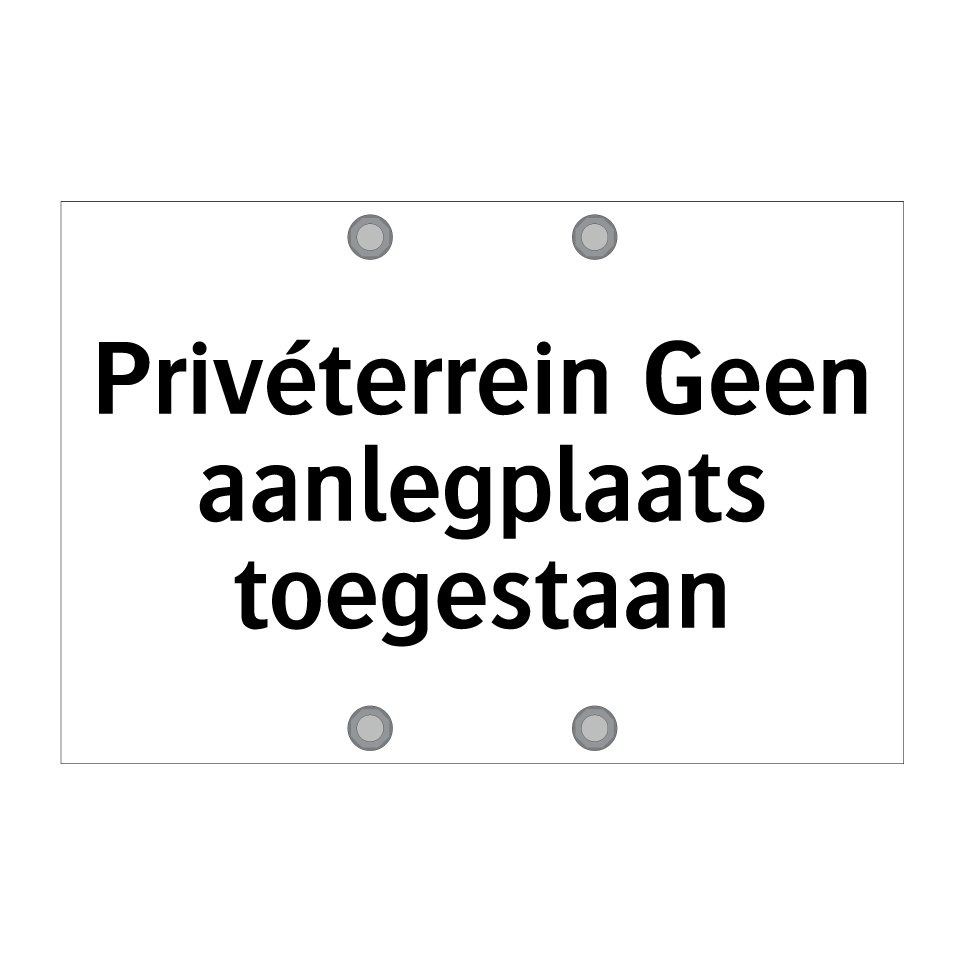 Verbodsbord met de tekst Privéterrein Geen aanlegplaats toegestaan