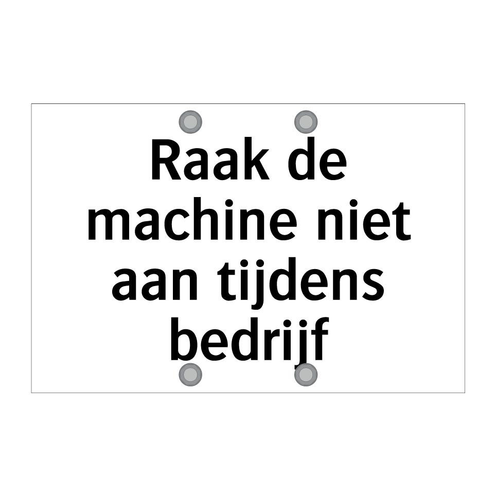 Verbodsbord met de tekst Raak de machine niet aan tijdens bedrijf