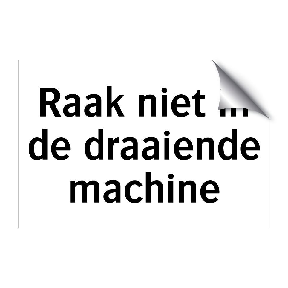 Verbodsbord met de tekst Raak niet in de draaiende machine