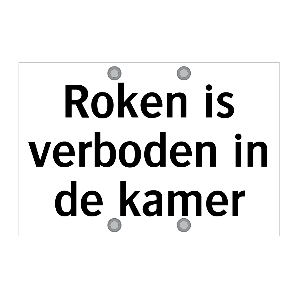Verbodsbord met de tekst Roken is verboden in de kamer