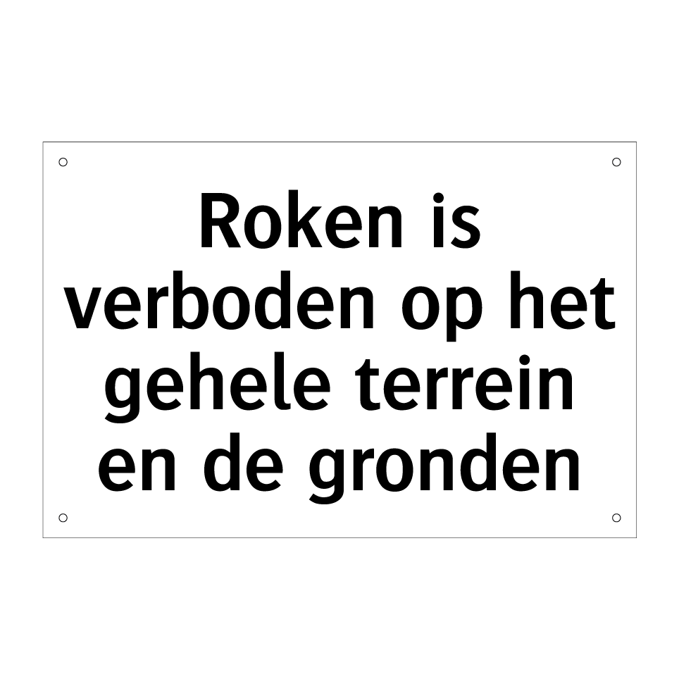 Verbodsbord met de tekst Roken is verboden op het gehele terrein en de gronden