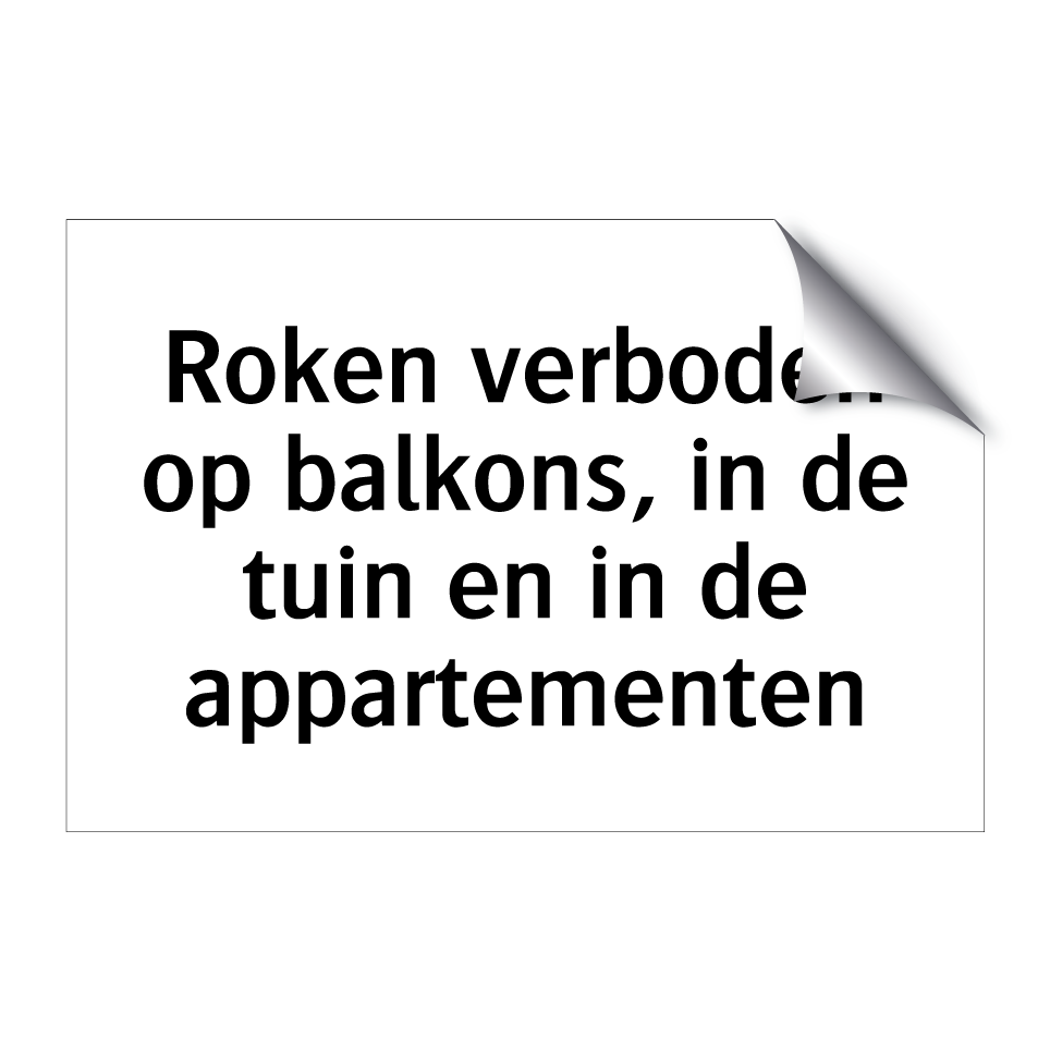 Verbodsbord met de tekst Roken verboden op balkons, in de tuin en in de appartementen