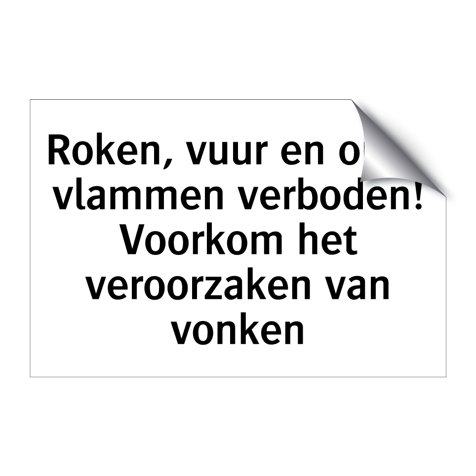 Verbodsbord met de tekst Roken, vuur en open vlammen verboden! Voorkom het veroorzaken van vonken