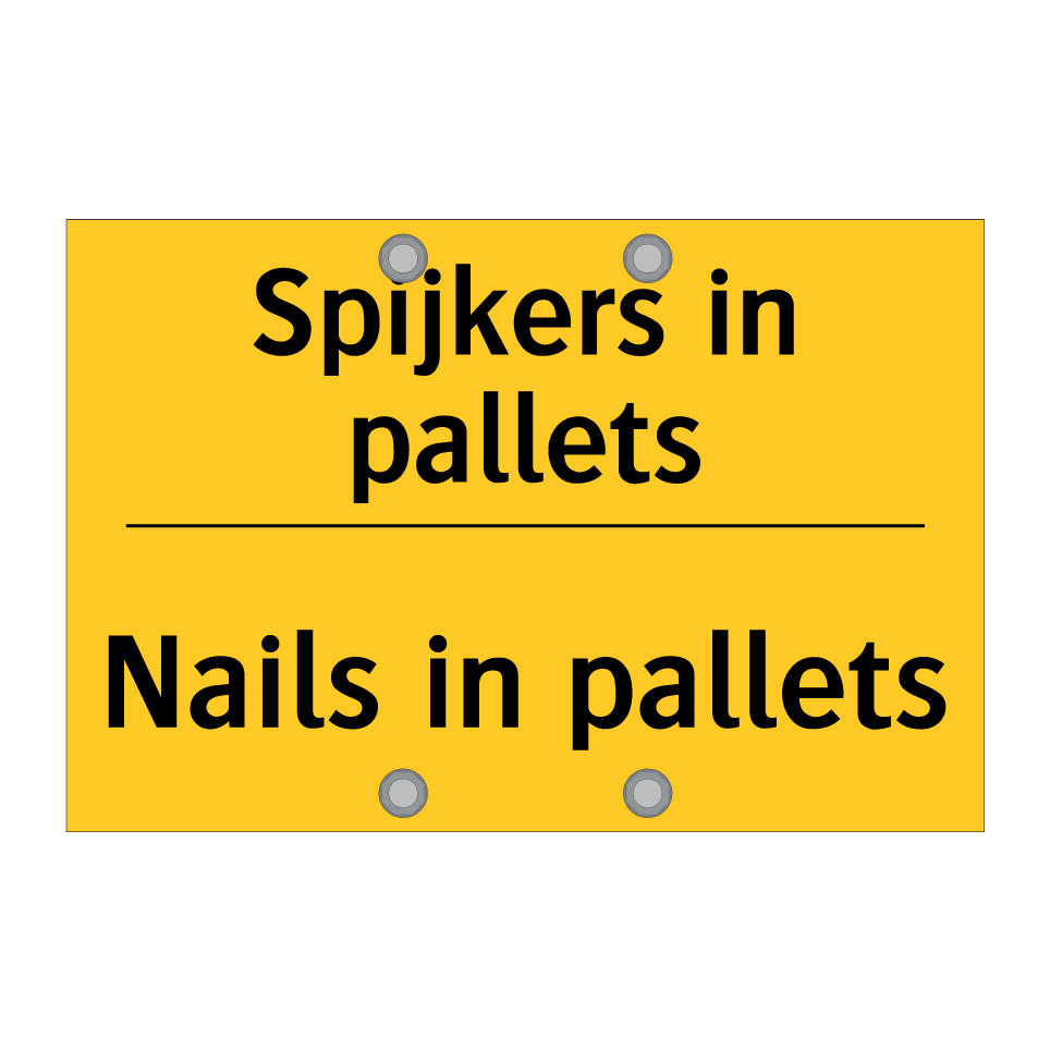 Dit waarschuwingsbord met gele achtergrond en zwarte tekst is ideaal voor gebruik in magazijnen, distributiecentra en werkplaatsen. De tweetalige tekst in zowel Nederlands als Engels zorgt ervoor dat zowel lokale als internationale medewerkers de boodschap begrijpen, wat de veiligheid verhoogt. Plaats dit bordje bij pallets om duidelijk te maken dat er spijkers aanwezig zijn, wat helpt om ongelukken en verwondingen te voorkomen. Dit waarschuwingsbord is essentieel voor elke omgeving waar pallets worden gebruikt en biedt een duidelijke en effectieve waarschuwing voor iedereen in de buurt.
