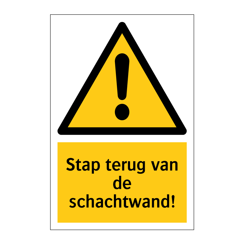 Waarschuwingsbord met de tekst Stap terug van de schachtwand!