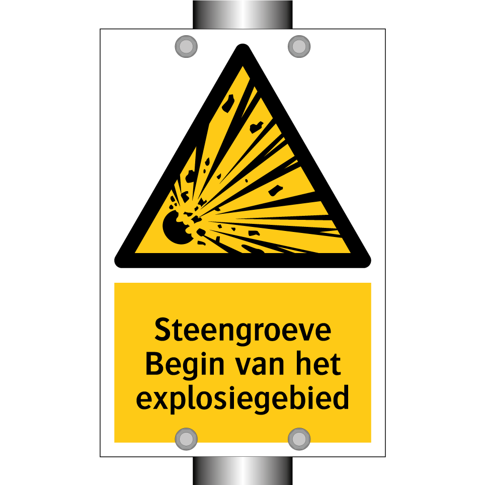 Waarschuwingsbord met de tekst Steengroeve Begin van het explosiegebied