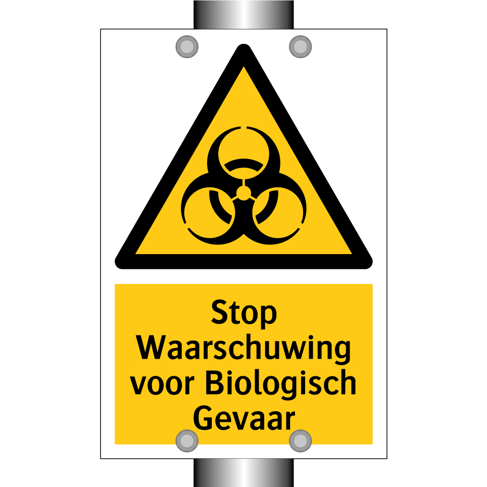 Waarschuwingsbord met de tekst Stop Waarschuwing voor Biologisch Gevaar