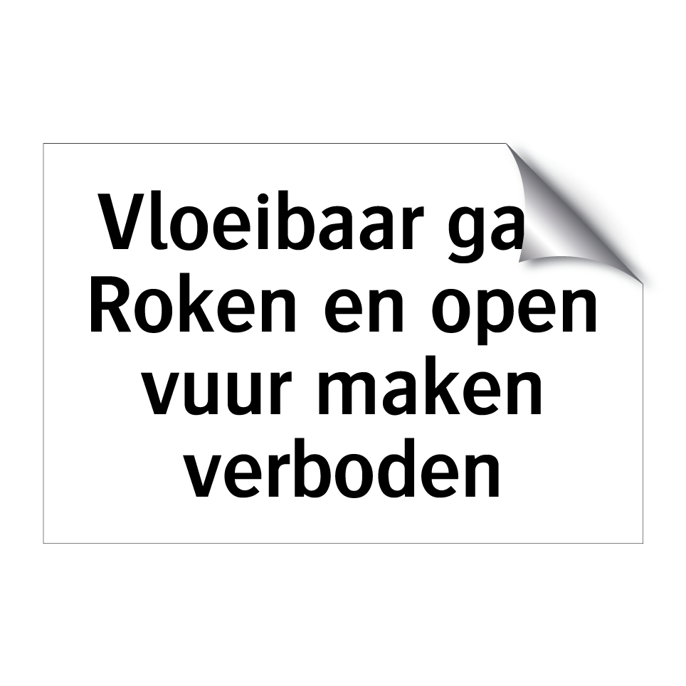 Verbodsbord met de tekst Vloeibaar gas: Roken en open vuur maken verboden