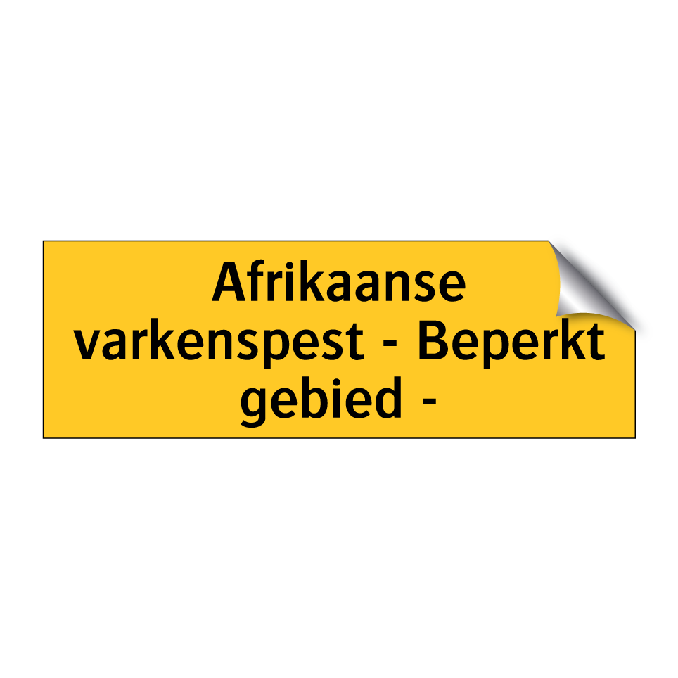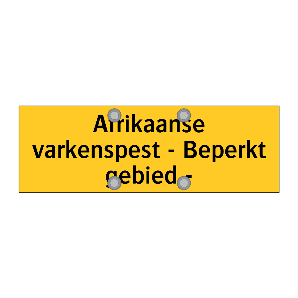 Waarschuwingsbord met de tekst Afrikaanse varkenspest - Beperkt gebied -