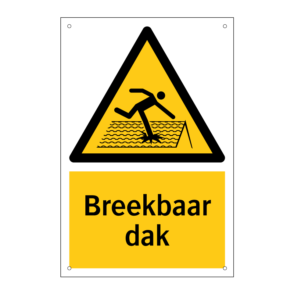 Deze waarschuwingsbord is essentieel voor het waarborgen van de veiligheid op locaties met kwetsbare daken. Het bord waarschuwt duidelijk voor het risico van instorting of beschadiging bij betreding van het dak. Ideaal voor gebruik op bouwplaatsen, industriële gebouwen, magazijnen en andere plekken waar mensen toegang hebben tot het dak. Door deze waarschuwingsbord strategisch te plaatsen, kunnen ongelukken en letsel worden voorkomen. Het is een onmisbaar hulpmiddel voor het beschermen van werknemers en bezoekers tegen potentieel gevaarlijke situaties. Zorg ervoor dat iedereen op de hoogte is van de risico's door deze duidelijke en opvallende waarschuwing te gebruiken.