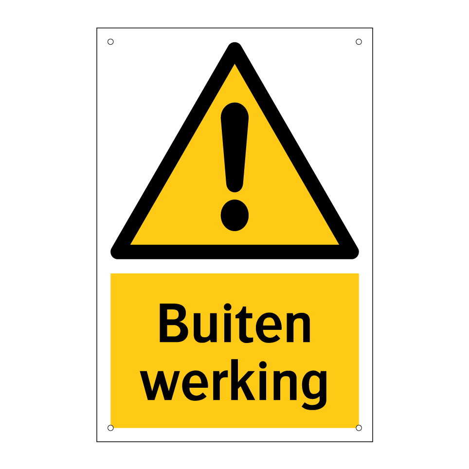Waarschuwingsbord met de tekst Buiten werking