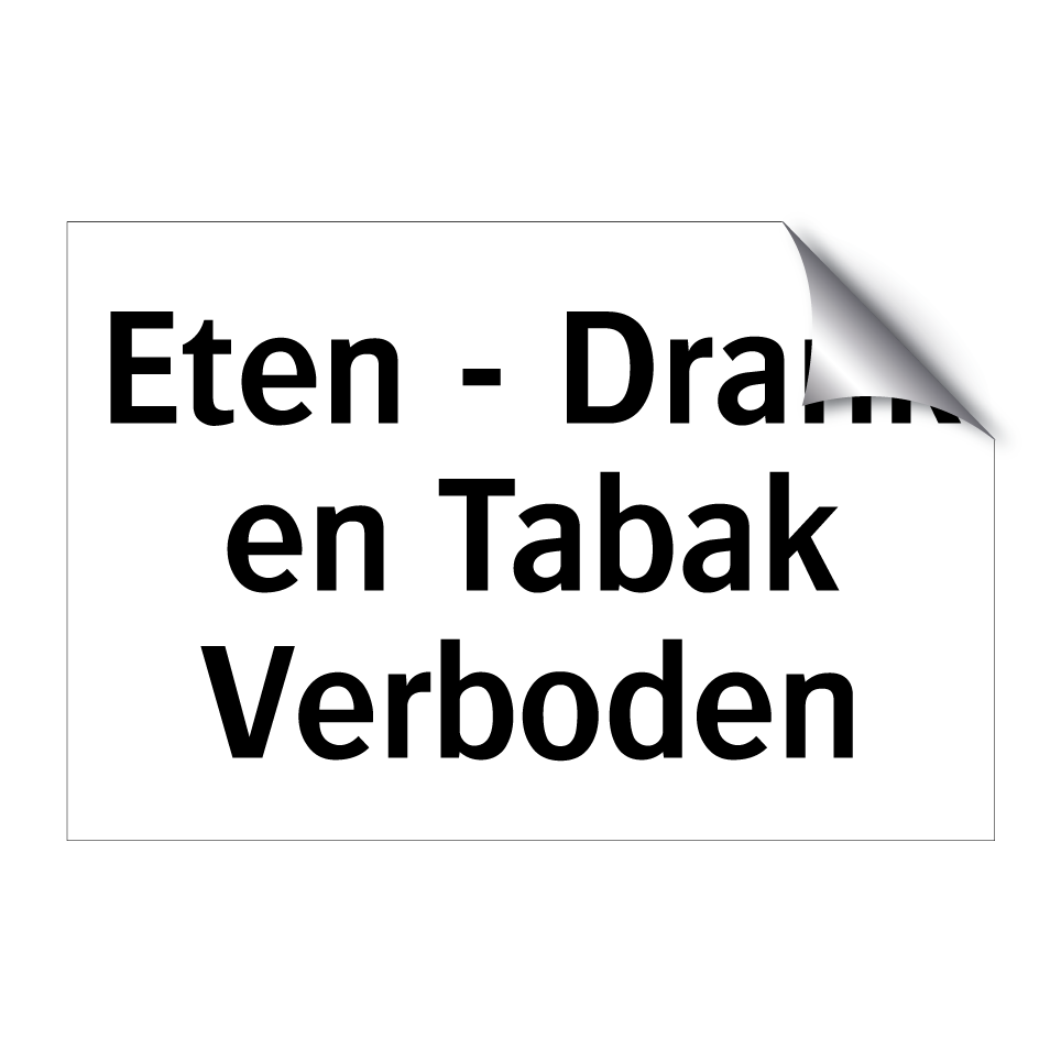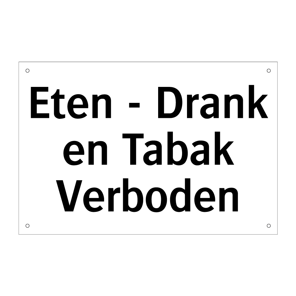 Verbodsbord met de tekst Eten - Drank en Tabak Verboden
