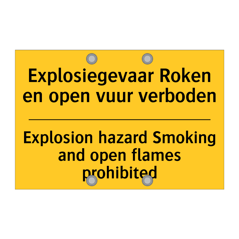 Waarschuwingsbord met de tekst Explosiegevaar Roken en open vuur verboden / Explosion hazard Smoking and open flames prohibited